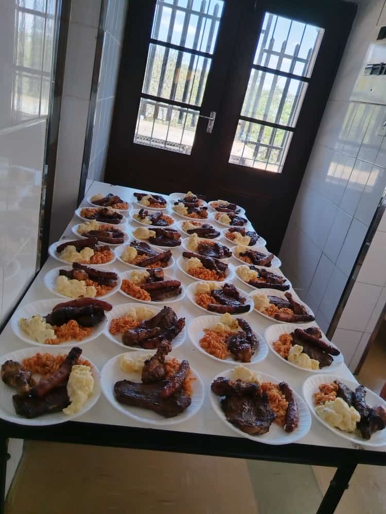 A delicious meal including sausage, a chop, chicken and salads were all prepared by Manie’s Takeaways.